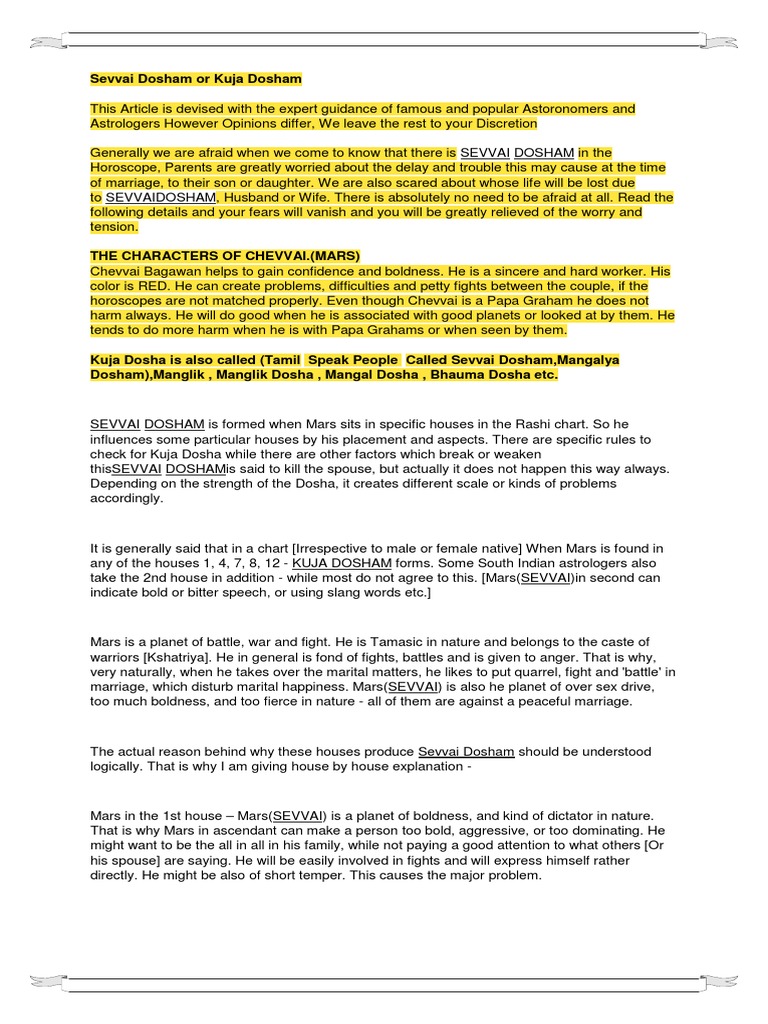 Mangal Dosha Meaning In Tamil / This comes to the forefront the native considers to get married.
