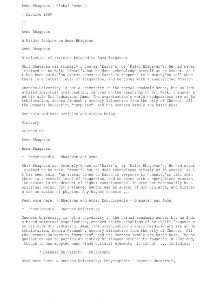 The Oneness University Sri Kalki Amma Bhagavan Posts Facebook Unknown august 10, 2009 at 1:59 pm.